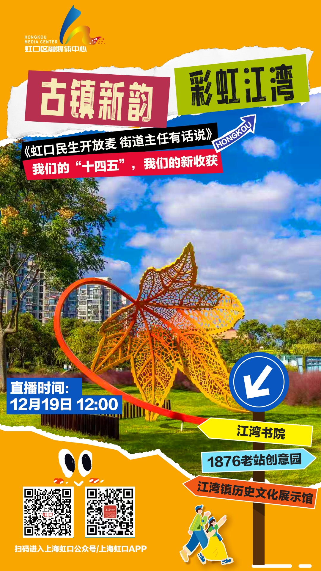 我们的“十四五”,我们的新收获。虹口区政府新闻办、虹口区融媒体中心推出在线访谈节目《虹口民生开放麦、街道主任有话说》。 “十四五”以来,江湾镇街道深入践行人民城市理念,坚持以“古镇新韵、彩虹江湾”为愿景,以高质量党建推动民生服务提质、社区治理增效、文化底蕴传承。第四期节目中,请来了江湾镇街道党工委副书记、办事处主任李森,介绍江湾镇街道如何通过一系列扎实的民生实践,努力将居民的“期盼清单”逐步转化为家门口的“幸福实景”。