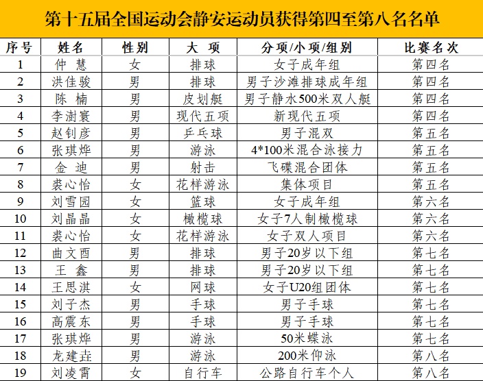 静安体育健儿在本届全运会上的
