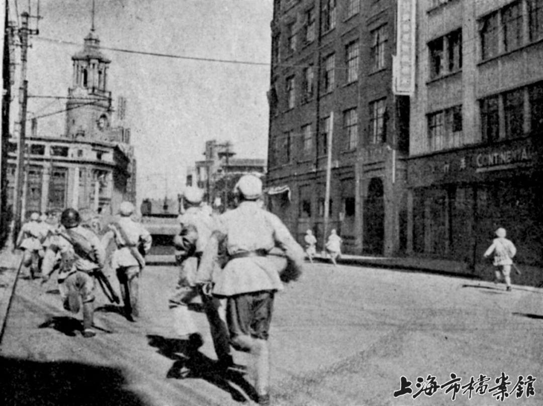 解放军向四川路桥北侧邮政总局里的残敌猛攻(上海市档案馆藏)