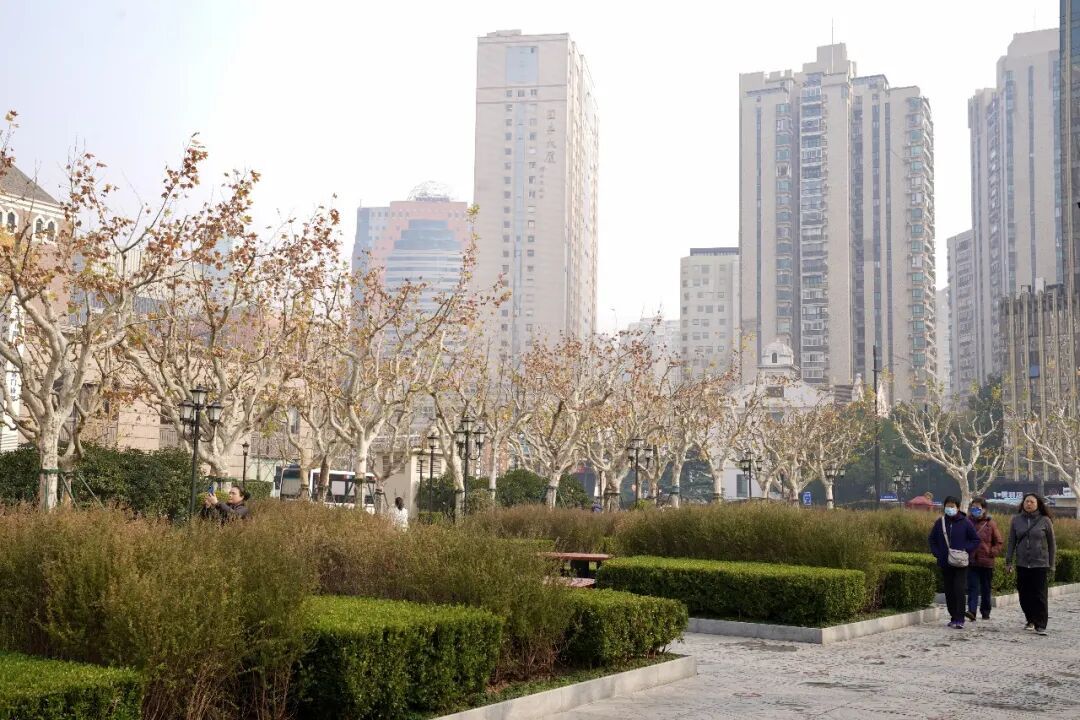 今日申城天色偏阴,光照条件不算充足。上午十点,徐家汇书院广场人来人往,梧桐树叶在寒风的吹拂下翩翩飘落。今日体感阴冷,羽绒服、厚冬帽、围巾等是不少市民出行的“标配”,但即使“全副武装”,仍然难以完全抵御寒冷。