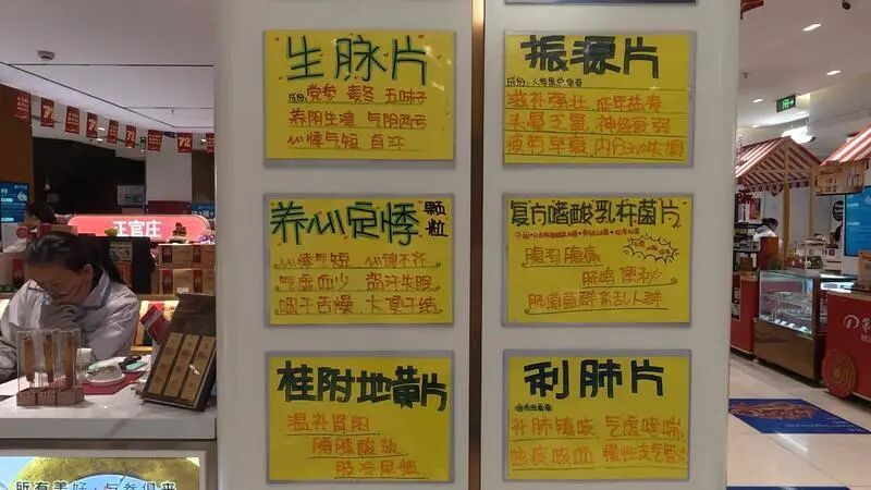 走进第一医药的柜台,不难发现许多“贴心小事”——这里专门准备了零钱包,方便不熟悉手机支付的老人使用现金结账;药品标签和优惠信息也都使用了加大字号。黄底配粗黑体,一笔一画写着药名,再用红笔、绿笔手写补充成分与功效,有的甚至画上了感叹号。这样的手写风格不仅醒目,便于年长的顾客辨识,也像是专门写给“老朋友”们看的。