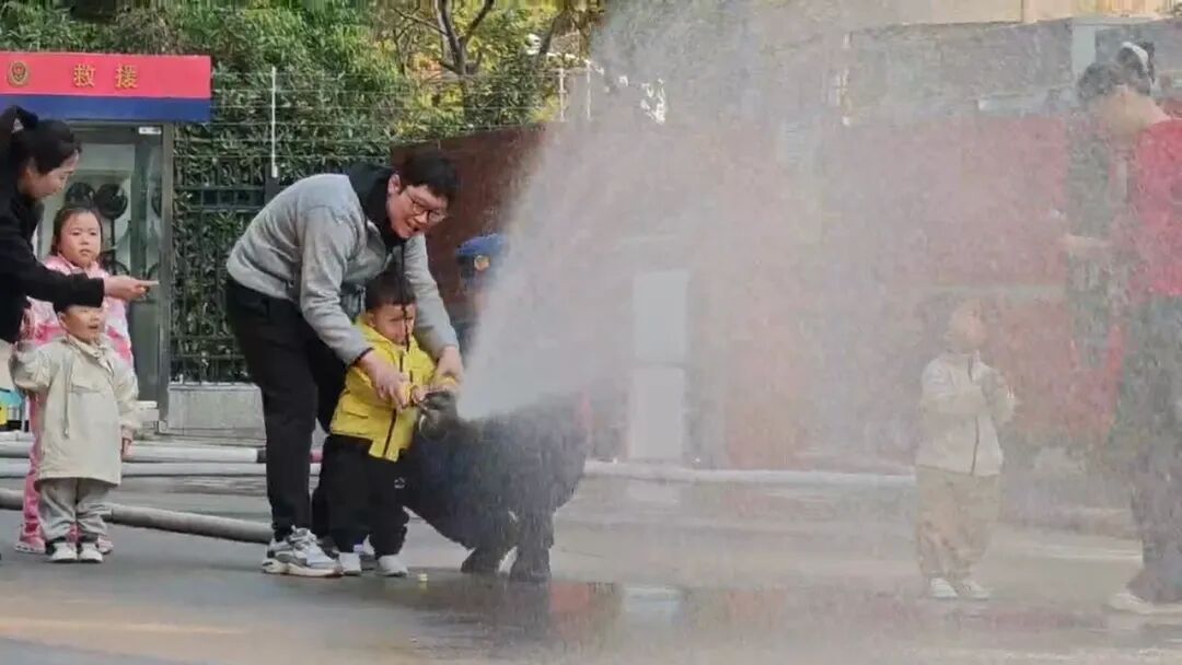 。萌娃们在家长的陪伴下,兴奋地体验了消防水枪。亲子家庭在消防员的专业指导下,体验了逃生绳的使用,在互动中掌握了实用的消防安全知识。消防开放日