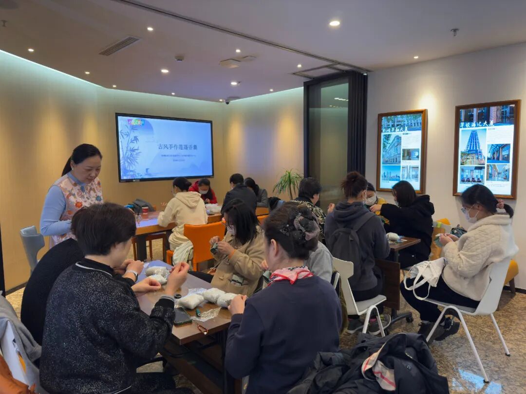 而对上班族来说,社区书院更像是忙碌生活中的“减压舱”。午间的“建筑冥想”活动,一众学员在专业人士的引导下闭目聆听外滩大楼的历史。他们听着海关钟声的故事,想象百年前这里的景象,工作的压力仿佛真的在慢慢消散。此外,他们还可以还尝试蚕丝团扇制作,在一针一线之间寻找宁静。