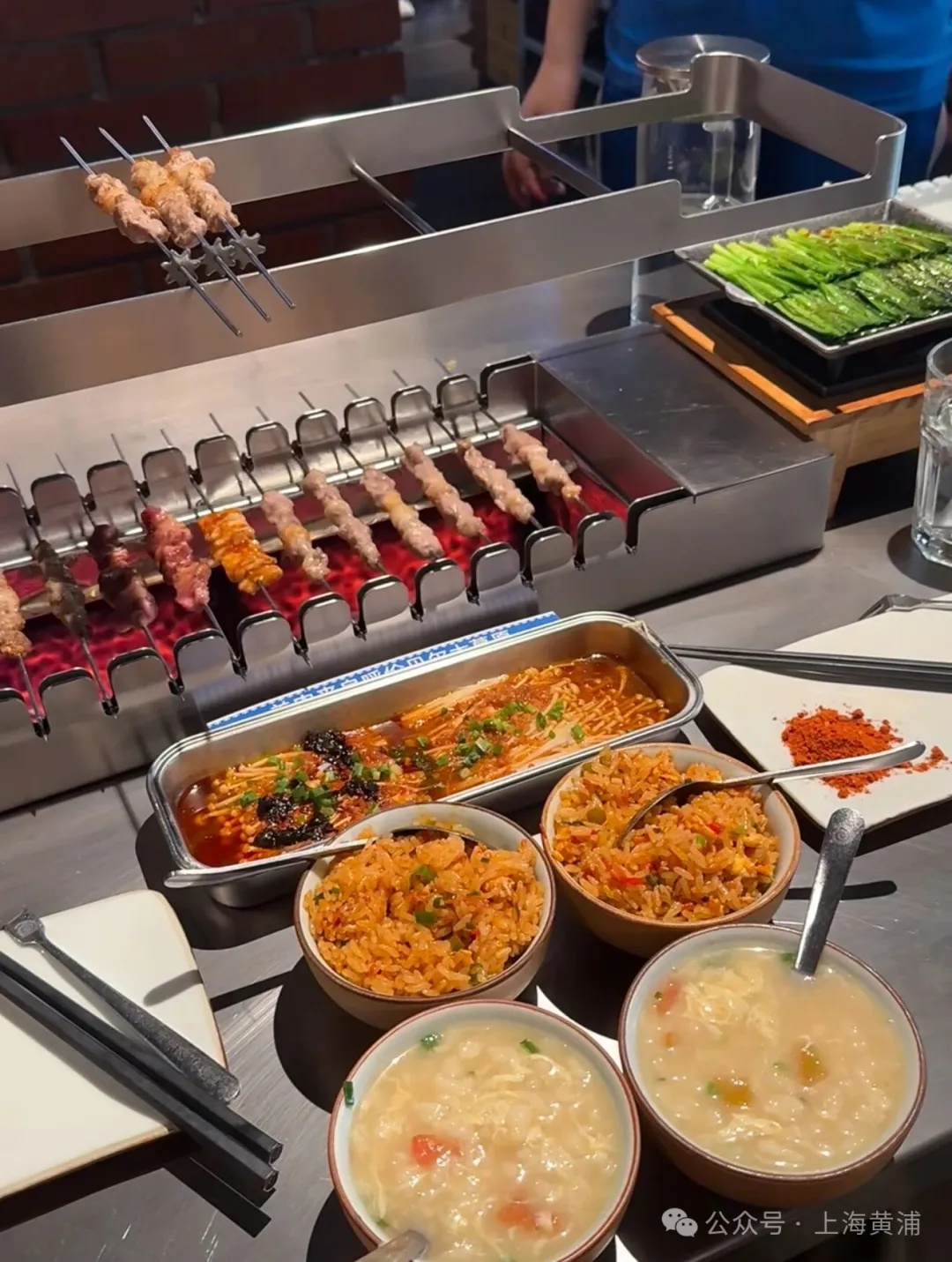 每桌都设置烤炉,顾客在店员的辅助下现烤现吃,互动感与现场感十足。更有趣的是,南京路这家店吸引了大量韩国游客,为此,门店还特地招聘了韩语翻译。