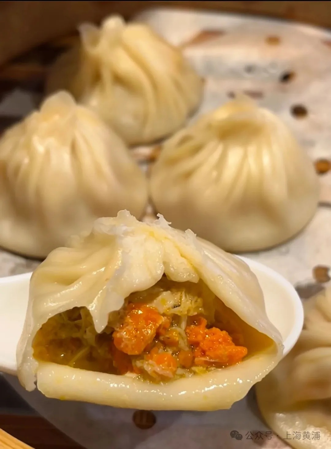 蟹粉小笼是招牌,当用筷子轻轻挑破小笼皮子,里面的蟹黄汤汁呼之欲出, 一口咬下去,满口腔的蟹粉味,混合着鲜甜的猪肉,还能吃到饱满的蟹黄。