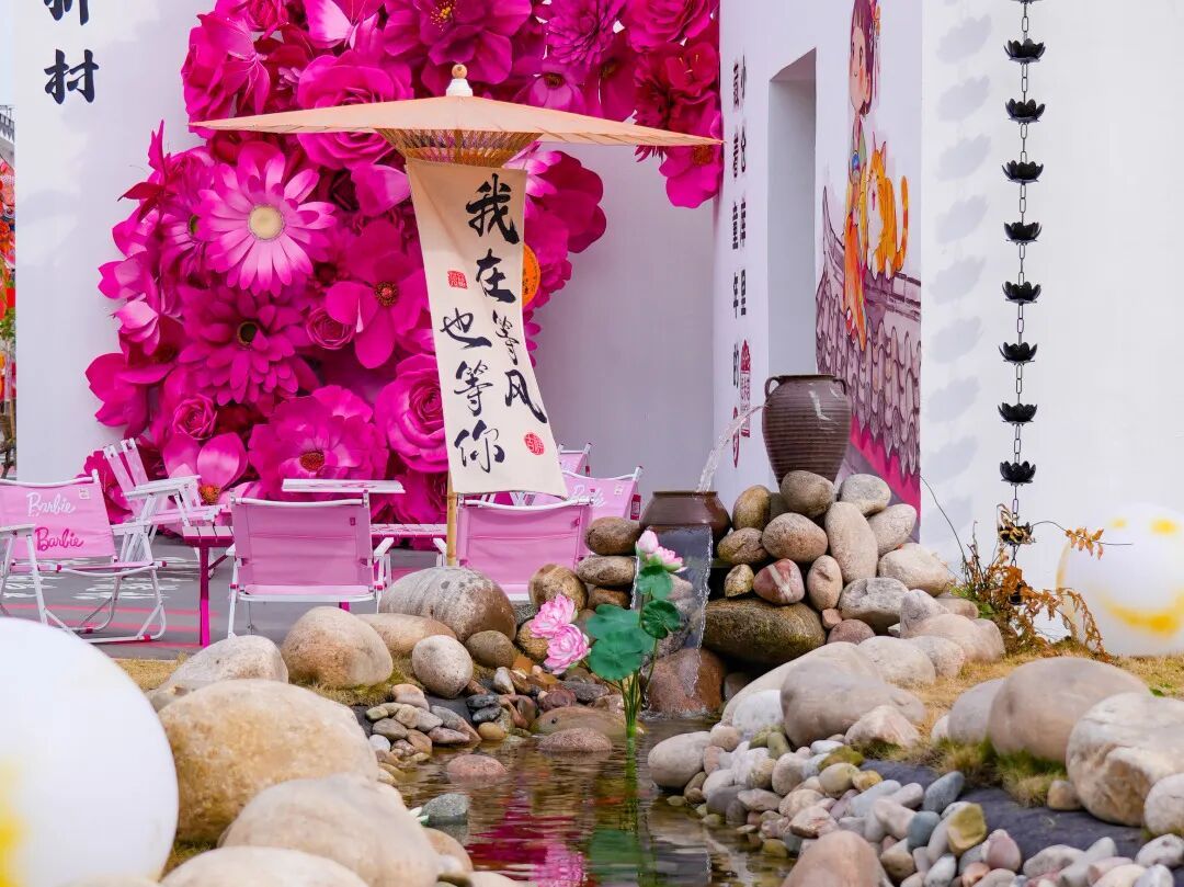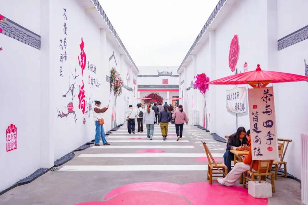 改造后的思卡诺打折村整体主打中国风,外立面保留红砖白墙肌理,融入国画、流水景观等国风元素,与村内清澈河道、竹篱“小三园”共同构成一幅和美宜居画卷。打折村内,悠扬婉转的国风乐曲循环播放,让消费者仿佛置身于江南村落,既提升了购物体验,也成为许多人专门前来打卡的“网红地”。