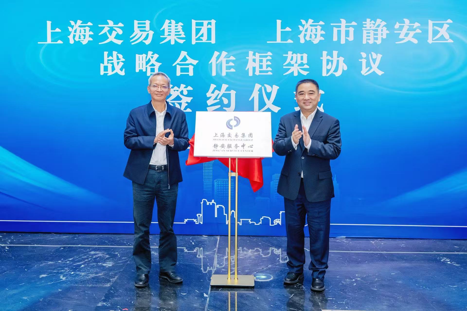 钟晓咏、余旭峰共同为上海交易集团静安服务中心揭牌,并正式开启“上海交易集团静安专版”线上专区。
