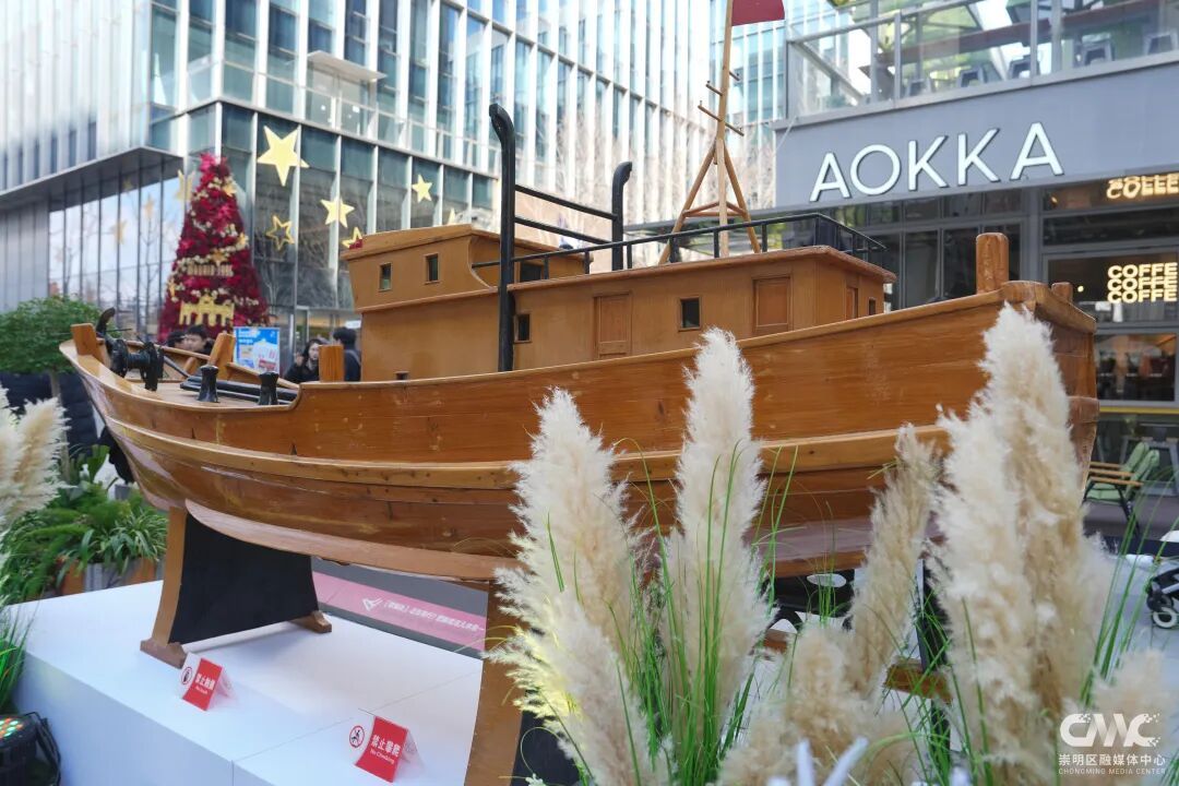 众多拍照打卡的宝藏角落中,有一只透明的气泡球成了最亮眼的风景——里面藏着一台会“织梦”的老织布机,上海市民不仅能亲手摸到绵密扎实的崇明土布,还能现场挑选萌趣布艺文创,直观感受崇明非遗的魅力。此外,崇明沙船模型、江南造船航模、复古老酒坛等一件件自带故事感的展示物品,都向大家传递着这座岛屿的历史厚重感和岁月气息。