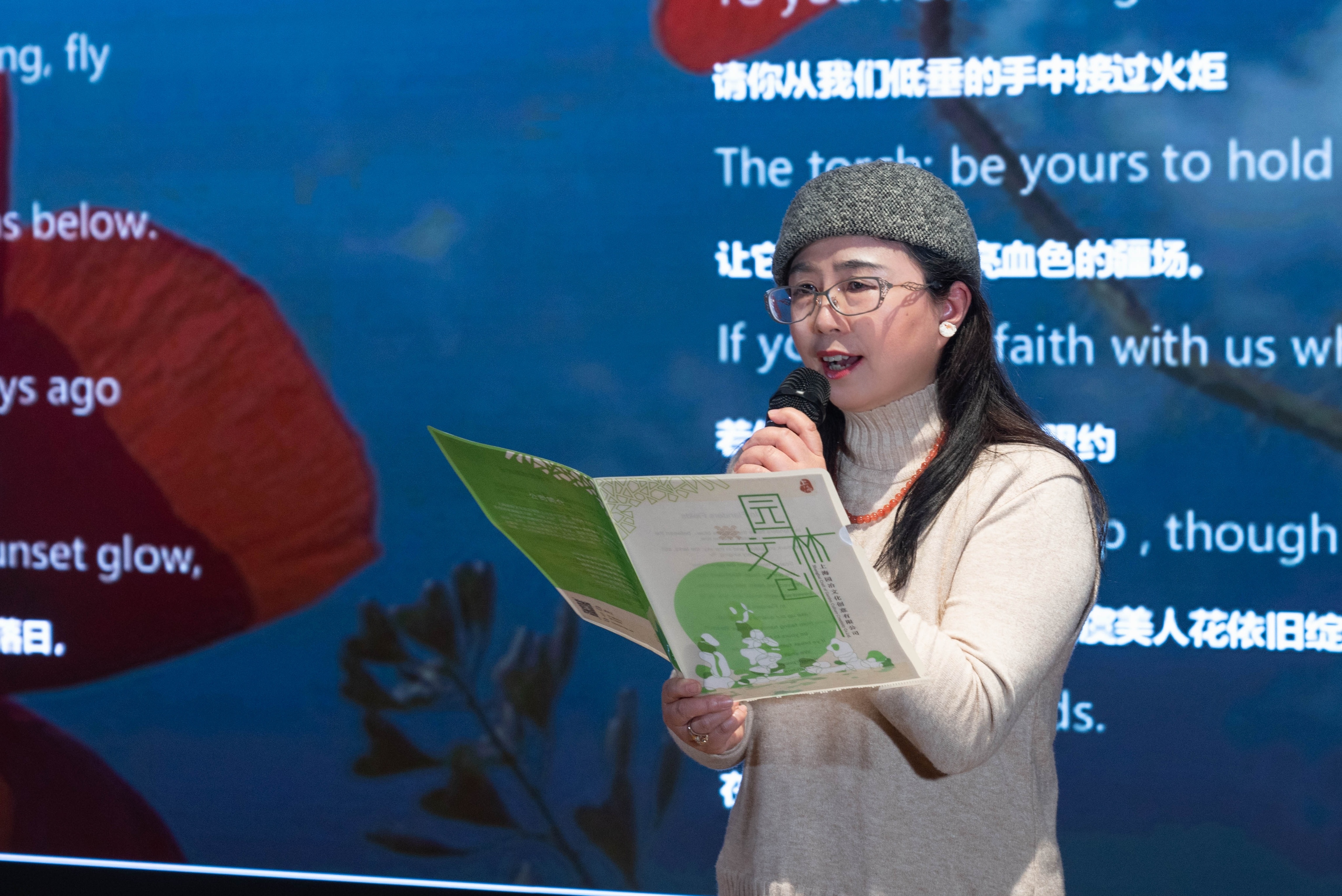 活动现场,从承载着东方智慧与含蓄情感的中国月季,到在《在佛兰德斯战场》诗行间绽放的虞美人,林老师娓娓道来。当《在佛兰德斯战场》的诗歌被中英文依次朗诵,肃穆的声韵仿佛让时光凝结,战争的伤痛与和平的祈愿,在这一刻,通过一朵花达成了跨越时空的连接。