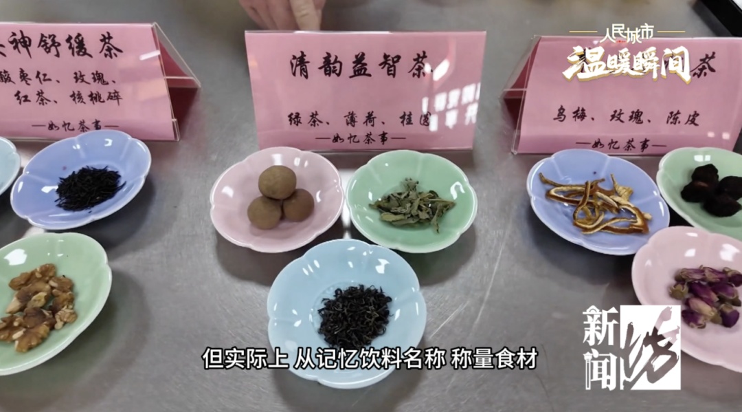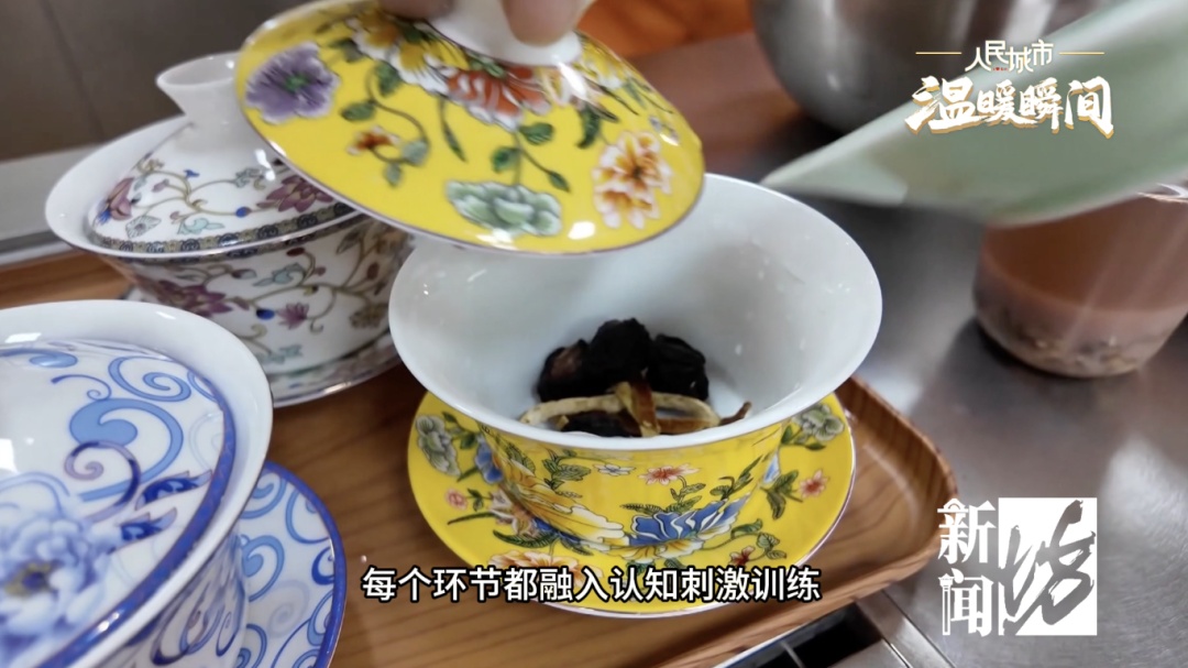 据介绍,制作饮料的过程看似简单,但实际上,从记忆饮料名称、称量食材,到冲泡封装,每个环节都融入认知刺激训练。