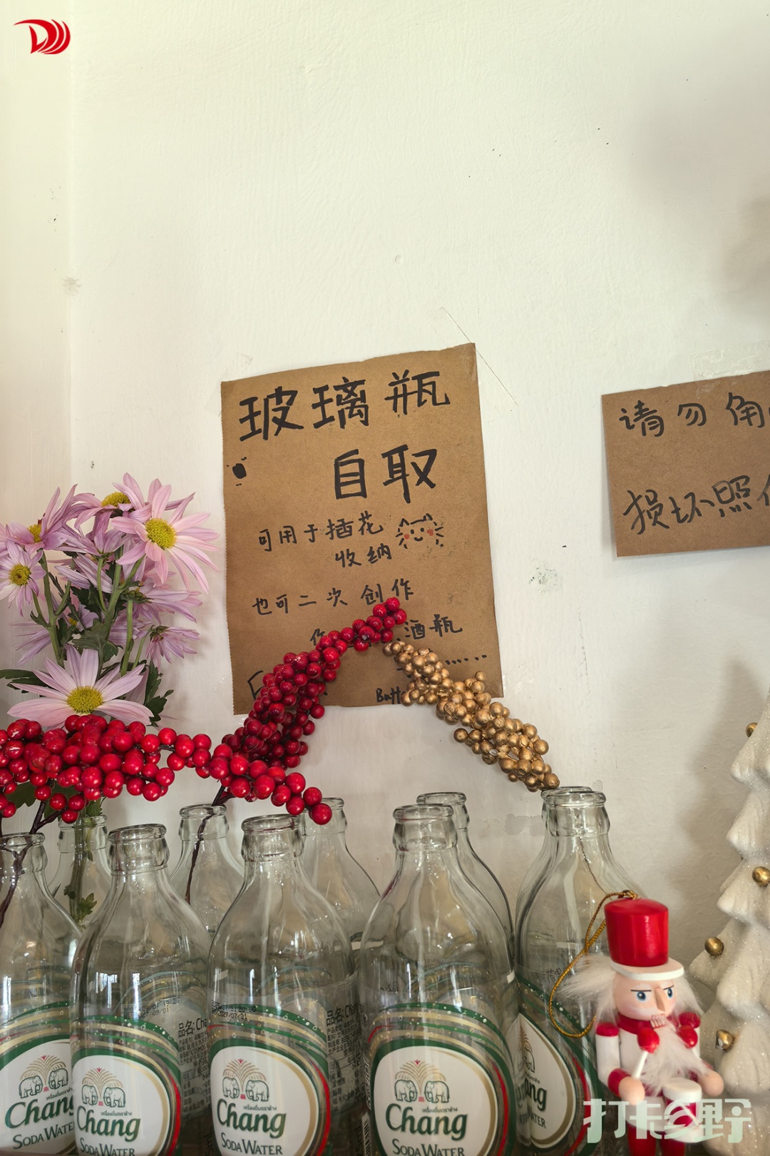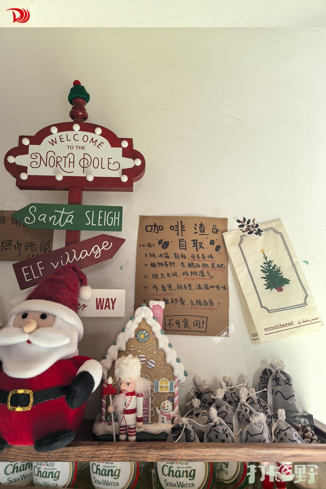 主理人将环保与分享的理念,藏在了空间的各个角落:制作饮品留下的玻璃瓶被洗净收纳,欢迎客人自取带回家二次利用;而萃取后的咖啡渣也被细心装袋,并附上了贴心的使用攻略(可作除味剂、植物肥料等)。这些小小的设计,让一次简单的消费,变成了可感知的、有温度的循环。