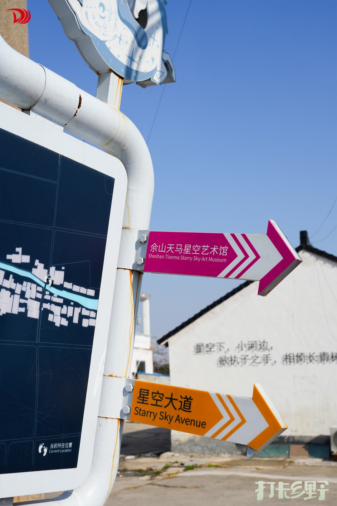 在这里,科学的浪漫完美融入了乡野田园。在走近它的时候,你会发现,星空宇宙的元素已悄然铺满,不起眼的石墩、墙面上都画满了星空宇宙的元素。