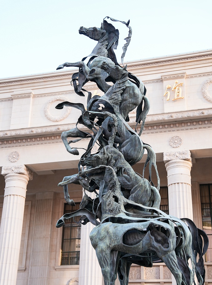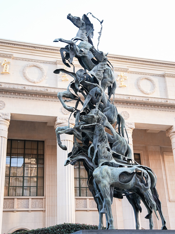 友谊会堂前,由法国雕塑家阿曼创作的“飞跃的马”雕塑静静伫立,马首昂立、双蹄飞舞,雕塑定格了奔腾的瞬间,将勇往直前的气魄定格成永恒风景。