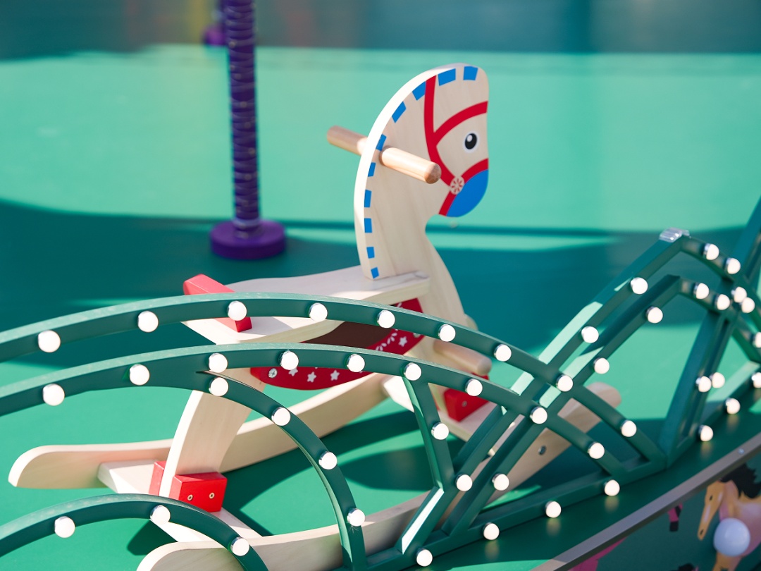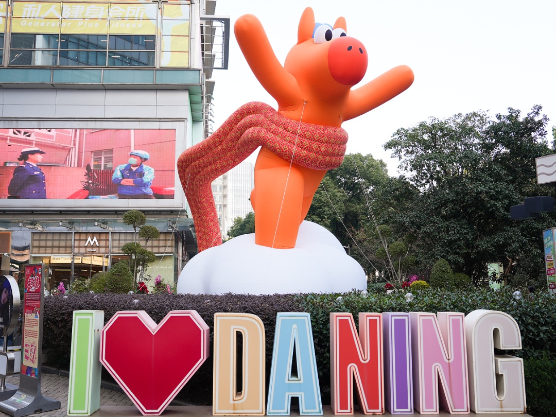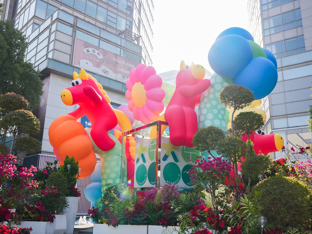 大宁国际的广场上,“走马嬉春”主题装置早成了亲子圈的“网红”打卡点。
