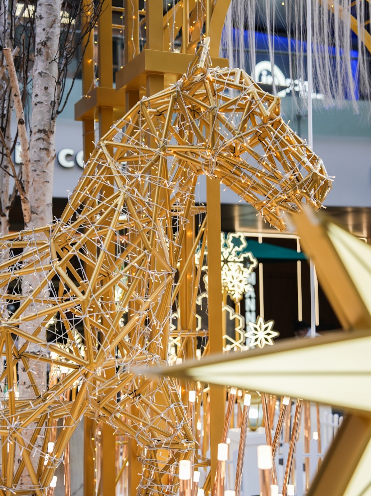 不同品牌的马元素布置各有巧思:有的是线条利落的马轮廓衬着当季新品,有的是柔光灯下的马形装饰裹着精致氛围,让人忍不住停下脚步,隔着玻璃把这抹精致收进相册。