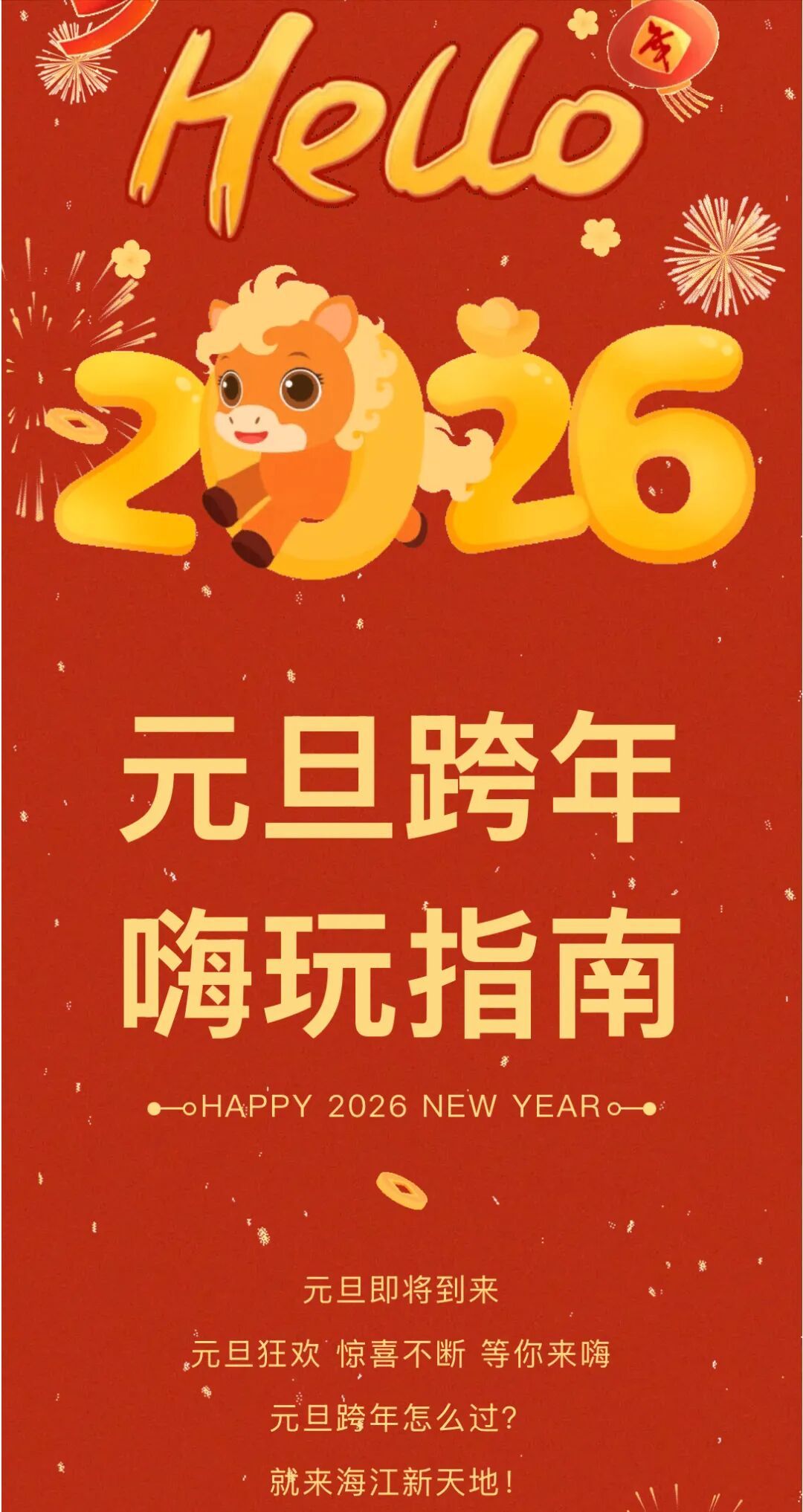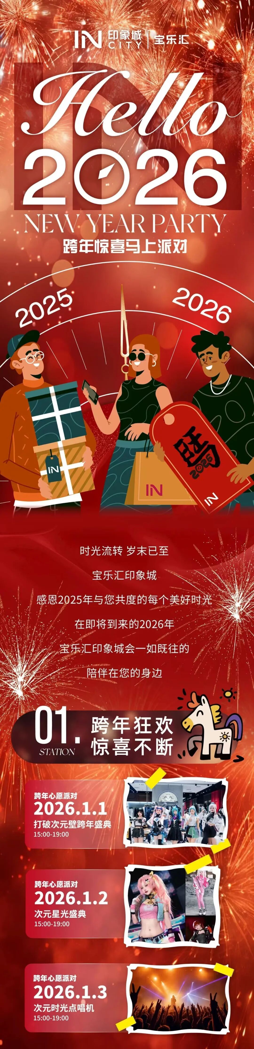 紧扣2026马年生肖主题,重点商业综合体打造主题美陈装置,推出“跨年回馈大礼包”,通过扫码直达企业线上小程序,完成指定任务后,即可获得抽奖资格,涵盖满额立减、限时闪购、会员专享折扣等福利。