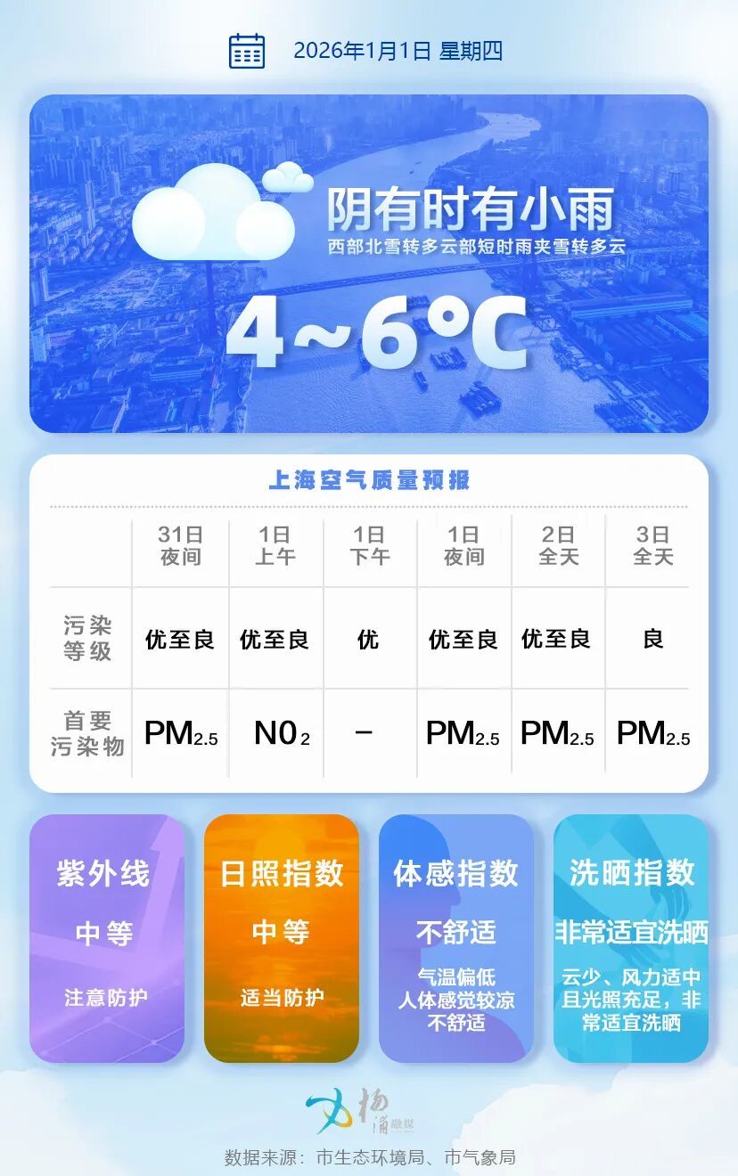 今天早晨前后转阴有时有小雨,全天气温在4~6℃之间,西部和北部地区以及本市一些高层建筑或可见短时雨夹雪或雪,傍晚到上半夜转多云。偏北风4-5级阵风6级,沿江沿海地区5级阵风6-7级。相对湿度55%-95%。