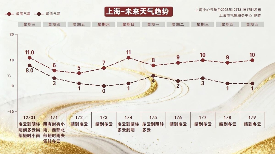 节后首个工作日,上海以多云天气为主。早晚依旧寒冷,白天升温至11℃左右。5日前后有冷空气扩散影响,云系增多,之后转为晴或多云为主的干冷天气,气温大体保持在1~10℃之间。在做好防寒保暖措施同时,也请注意用火用电安全。