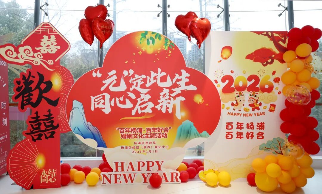 今天,杨浦区婚姻登记中心还特别策划了“元”定此生 同心启新——“百年杨浦·百年好合”婚姻文化主题活动,带来手写婚书、拓印年历、婚姻家庭辅导等多种服务体验,邀请新人们现场参与,为他们送上新婚祝福。