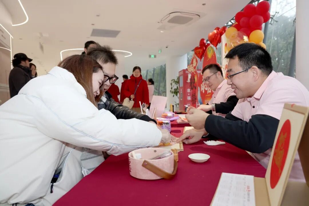尤其是“笔墨为誓·新年启瑞”手写婚书环节,分外吸引年轻人的参与。书法老师在洒金红笺上为每对新人亲笔书写婚书,“百年杨浦,百年好合”八个字既是对新人的祝福,也融合了区域文化特色。“没想到这里准备了这么多好玩的体验,很有‘中国味’,让我们体验了一下传统文化。我们可以把这份婚书带回家,留下了很特别的回忆。”体验者王女士表示。