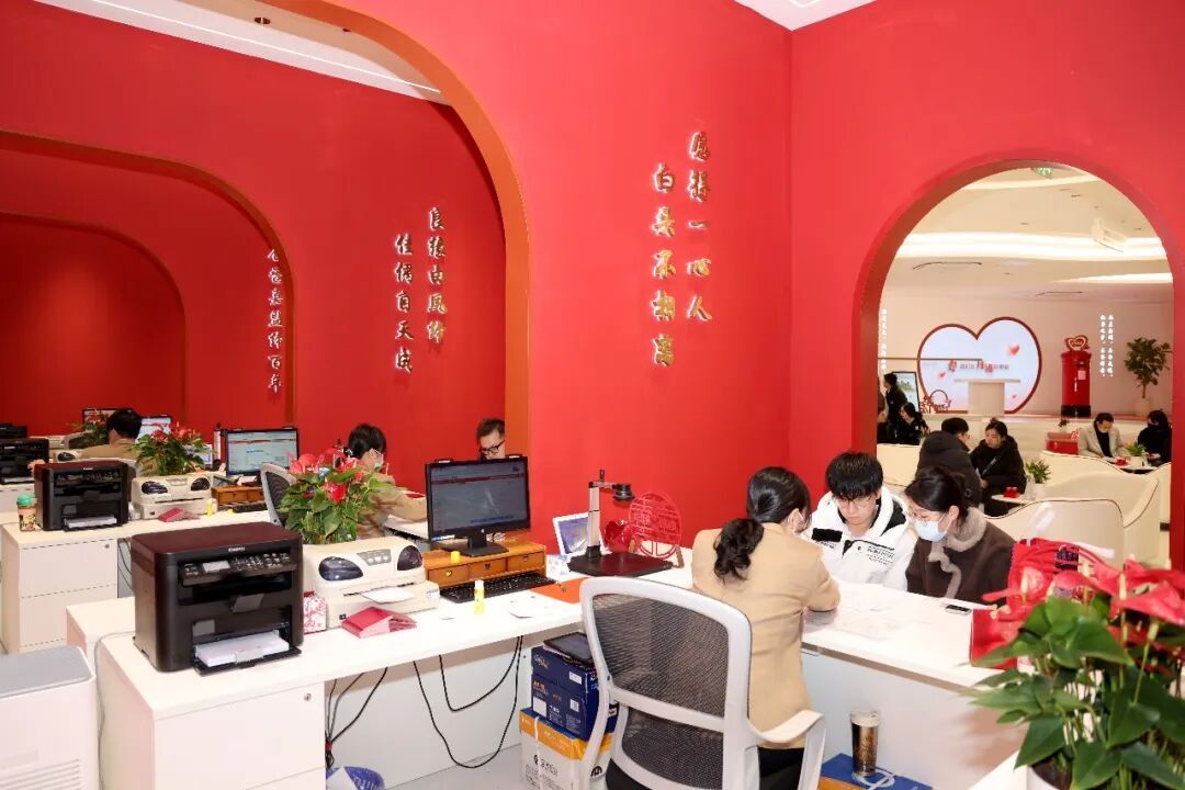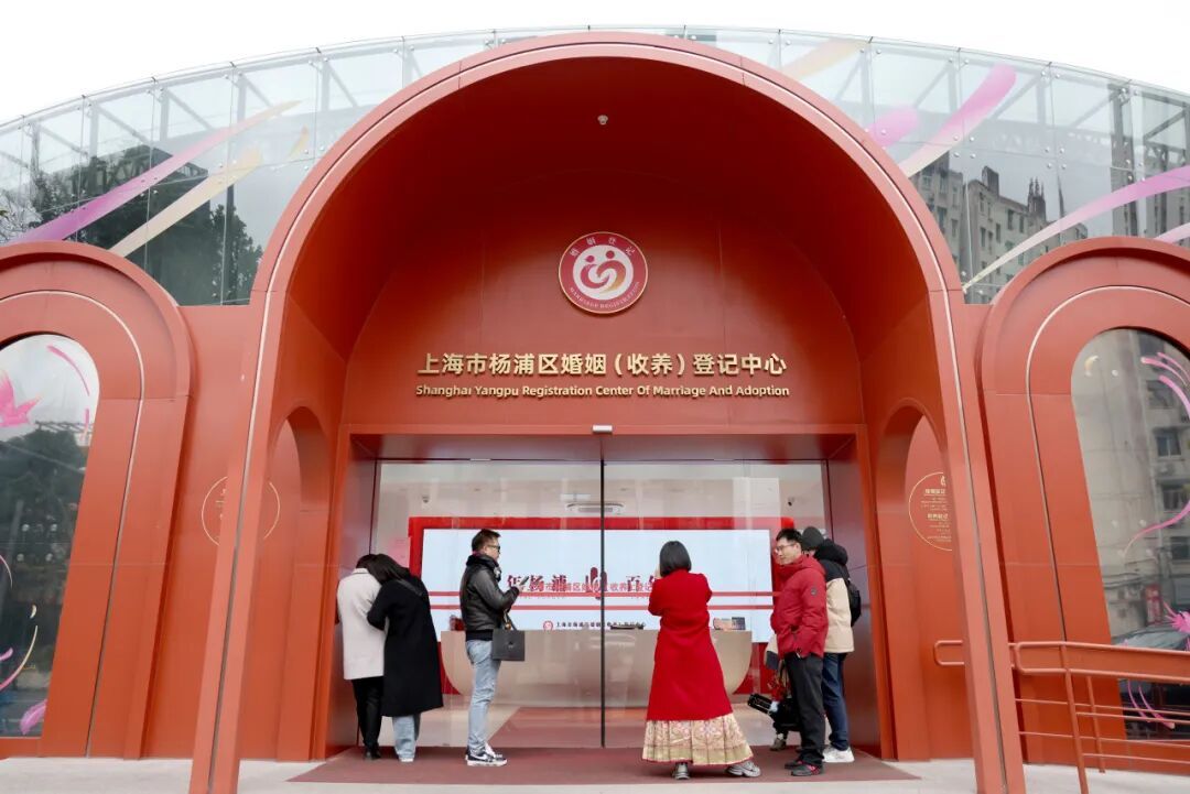 2024年,杨浦区婚姻登记中心迁至新址长阳路1111号,寓意“一心一意、一生一世”。室内以热烈红、纯洁白为主色调,还设计了两个各具特色的结婚颁证厅,为新人带来不一样的领证体验。