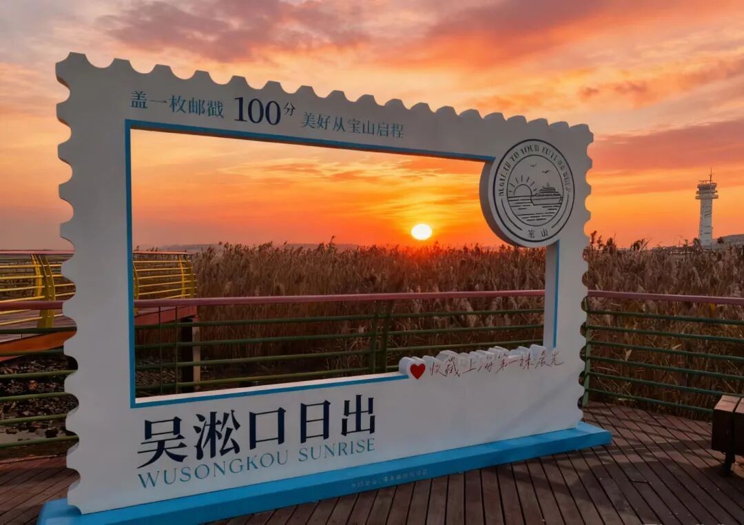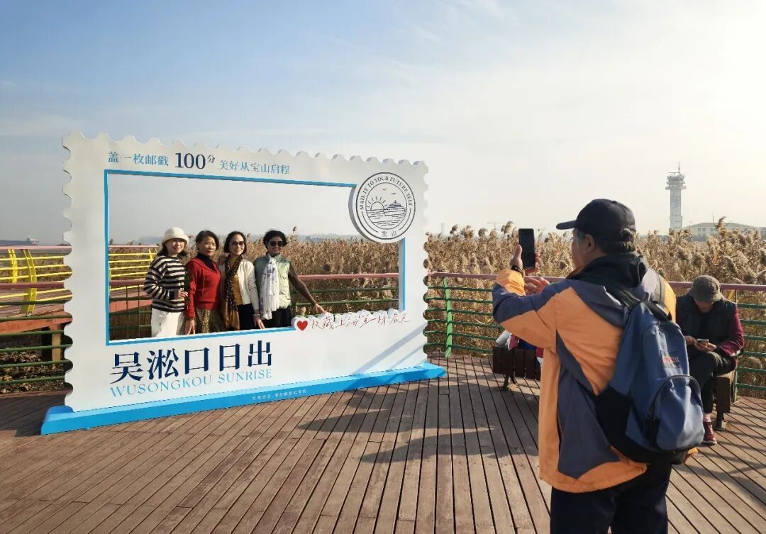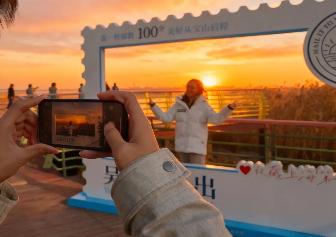 市民季阿姨告诉记者:“我会在日出的时间再来这里拍照,景色太漂亮了,我很喜欢。我丈夫是宝山本地人,我们对这里感情很深。”游客孙女士表示:“打卡点邮票造型的设计很别致,可以把不同时间段的美景都定格在这里,非常喜欢。”