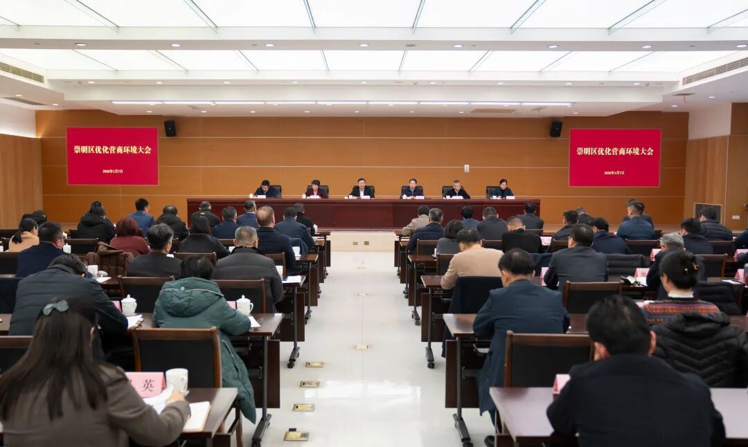 区委副书记、代理区长吕晨飞主持会议。区人大常委会主任薛红、区政协主席张权权、区委副书记杨元飞出席。区委常委、常务副区长黄晓霞部署2026年崇明区优化营商环境工作。部分企业家代表应邀参会。