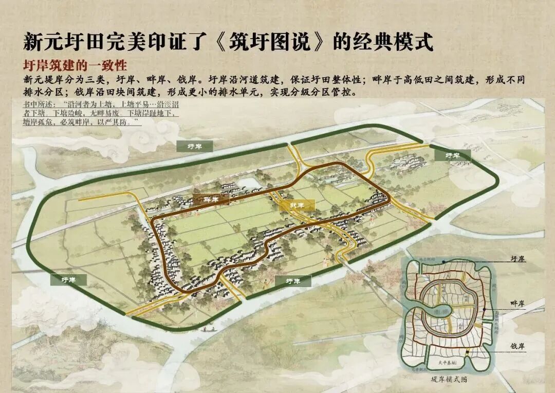 地处金山枫泾镇最北端的新元单元,拥有“泾河低地”地貌,属于上海乡村风貌空间结构“六域”中的棋盘型风貌区,承载着典型的古法圩田水乡空间治理文化基因。根据规划,新元单元将营造成为“塘浦纵横开沃野,莲叶田田六小圩,几处雨蛙诉乡情,行纪踏歌绘丰年”的千年圩田水乡画境。