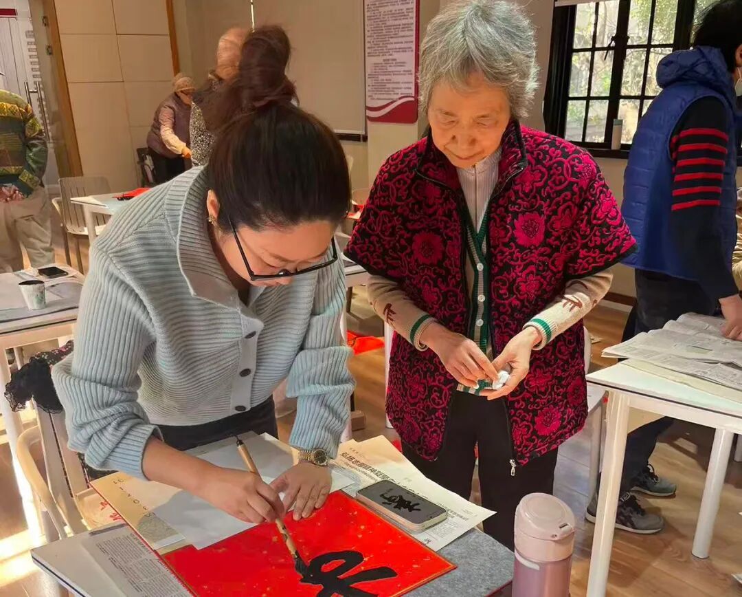 此外,“银墨坊”还积极融入社区文化建设,去年12月与位育初中书法小志愿者结对交流,以笔会友完成传统文化代际传承;临近春节举办“手书春联、福字”活动,将美好祝愿融入笔墨,赠予社区老年居民,践行“受益于社区,反哺于社区”的初心。