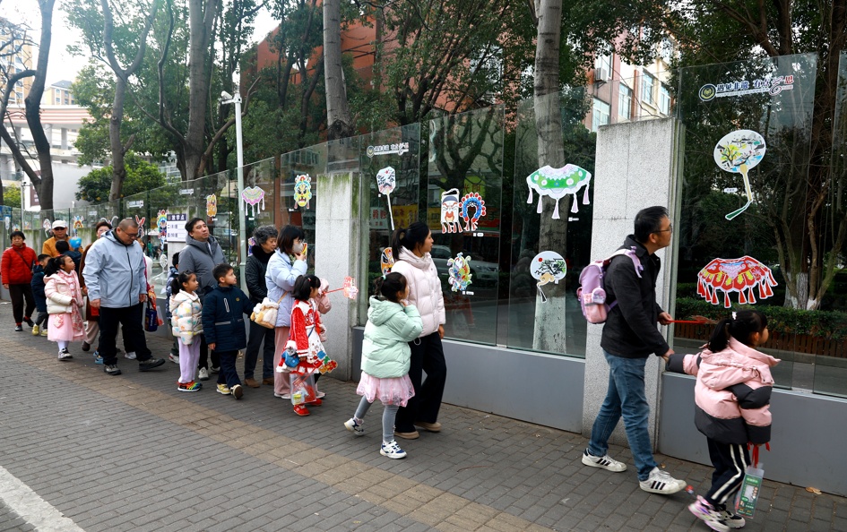 从钢筋水泥的校园围墙,到通透雅致的玻璃幕墙,如今更化作缀满学生非遗创作的特色展墙——这一连串的美好蜕变,让周边居民沈先生倍感暖心。“看着墙上孩子们充满童趣与创意的非遗作品,真让人动容,也特别期待我家孩子未来能有机会,让自己的作品在这里绽放光彩。”