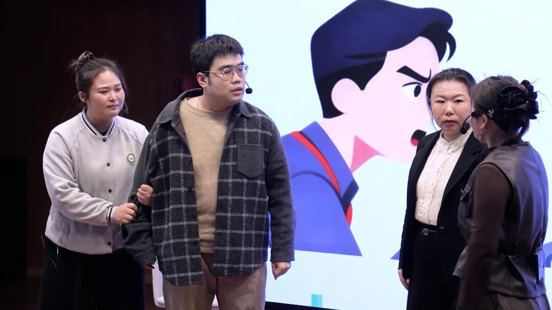 情景剧《“小矛盾”里的大智慧》将班级里的“小插曲”搬上舞台——两名学生因座位调整闹别扭,班主任巧妙引导他们开启“换位思考辩论赛”,唇枪舌战间,矛盾悄然化解。这种“以柔克刚”的育人艺术,引得台下掌声连连。青浦区实验中学教师姜南全程参与了情景剧环节,她深有感触地说:“在这次活动中,我深刻体会到班主任工作是一项育人的工程,本质是要看见每个孩子的需求和偏差,用爱心和公正引导他们成长。同时,还要搭建起孩子和家长之间的沟通桥梁,让每个孩子在我们的关照之下都能够健康快乐成长。”