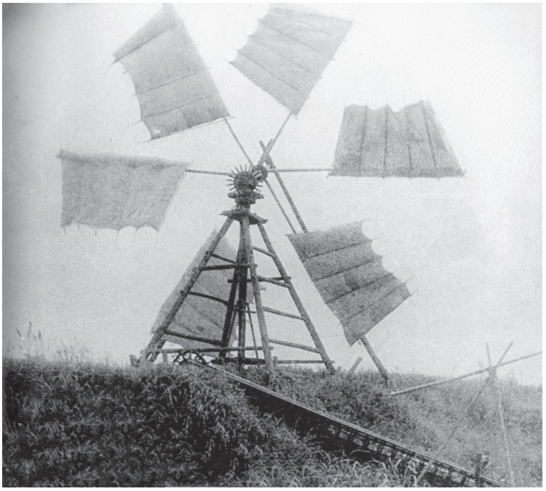 风车,在我家乡被叫作风打车。风打在篷上,篷跟着风转圈子,就带动车轴、拨舵,带动连头板子把水打上来。一桩需要非常大力气的农活,就这样让风轻松地代替人做好了。风打车这名字也名副其实,风车本是个“懒汉”,只有被风打了,它才转得动。