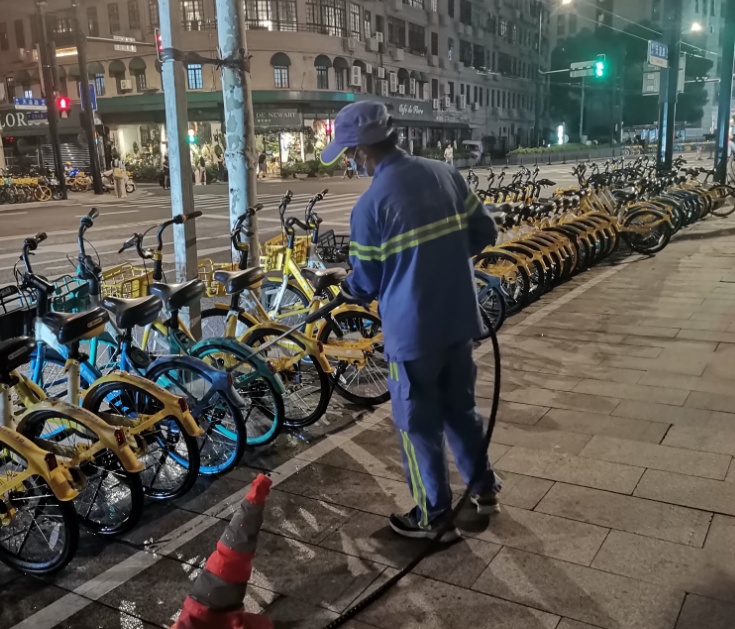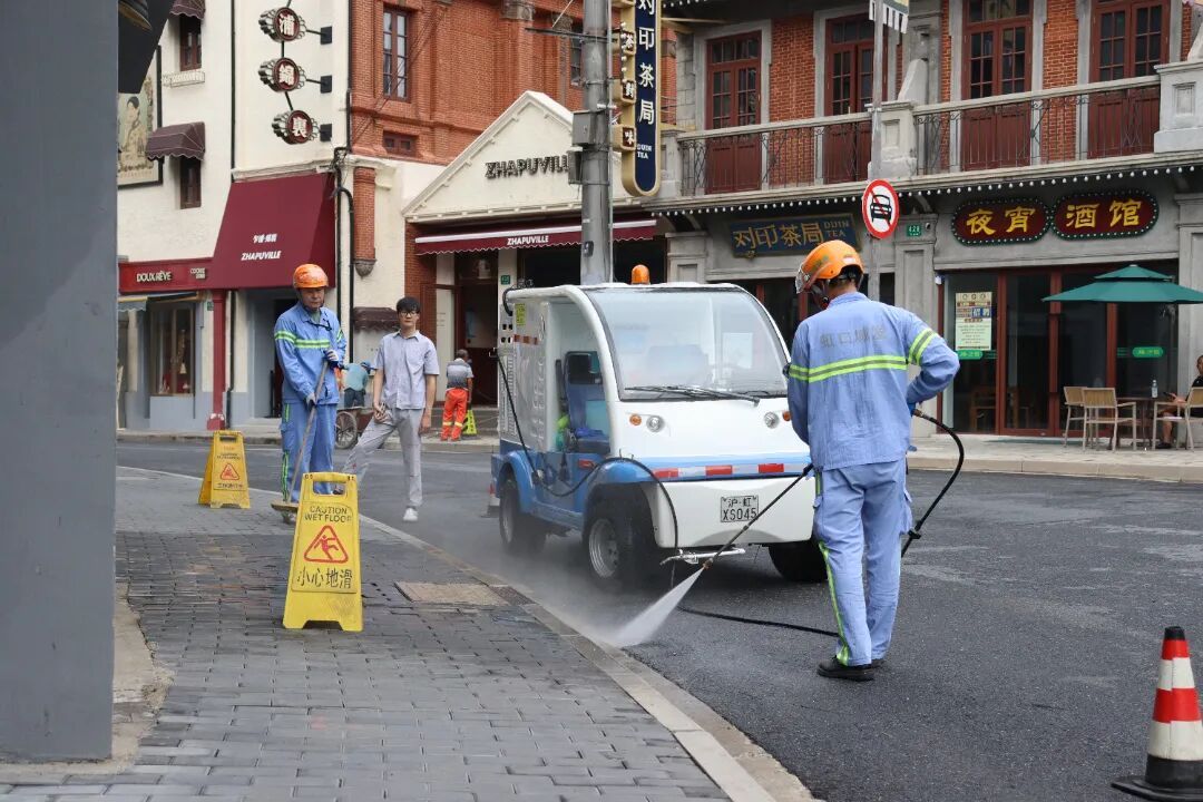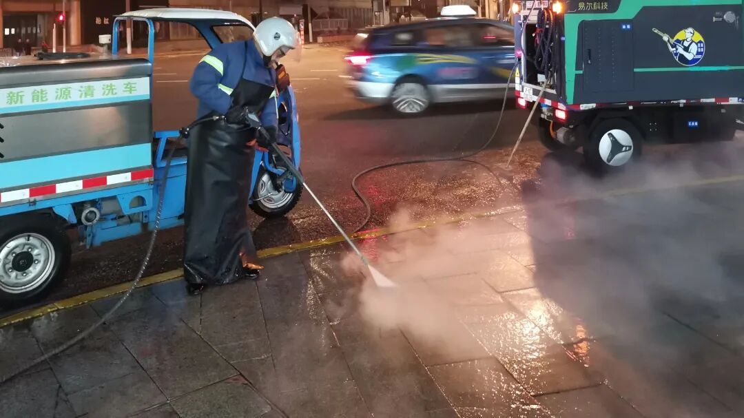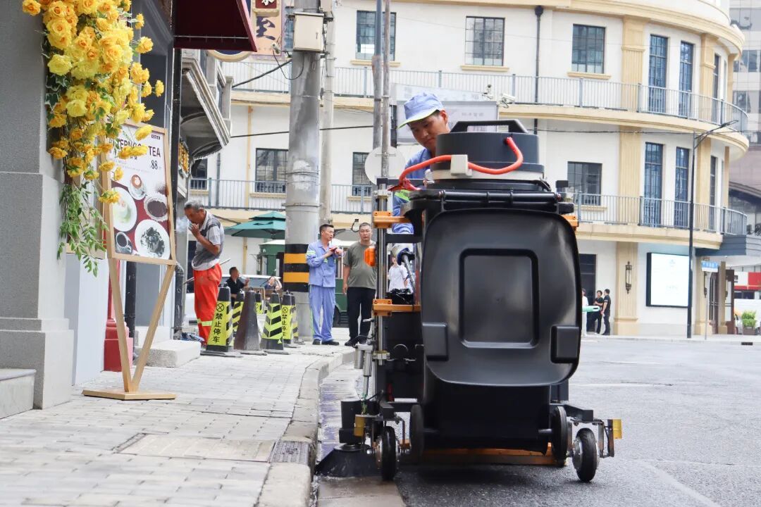 同时,通过“日间巡查+夜间冲刷”的错峰模式,提升共享单车停放区的洁净度。一旦发现商户油污污染,立即启用高温冲洗车进行局部处理,并联动街道督促商家规范经营,从源头减少污染。