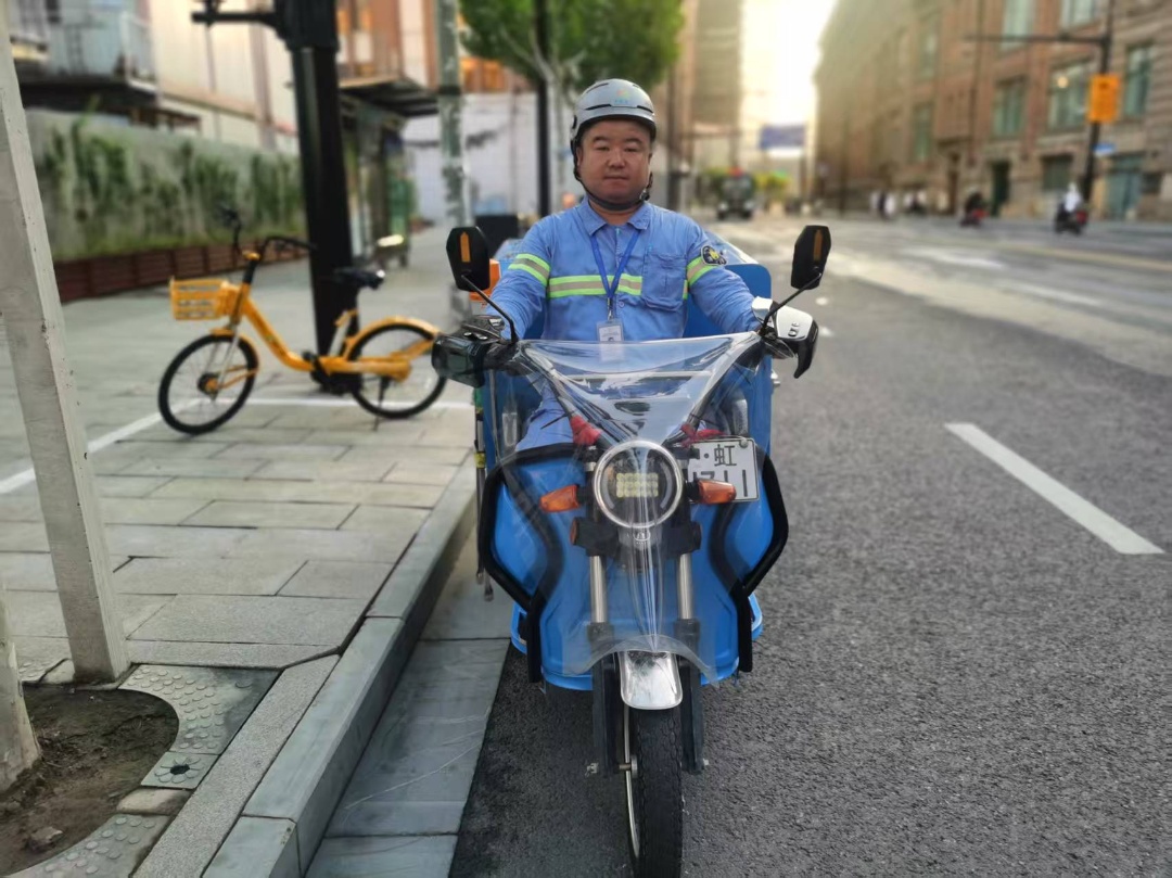 天潼路西段高标准保洁区连接四川北路与河南北路,总面积约1.2万平方米。区域内的地铁10号线、12号线天潼路站每日人流量较高,再加上非机动车乱停放、商户油污排放等问题,更让保洁工作难上加难。