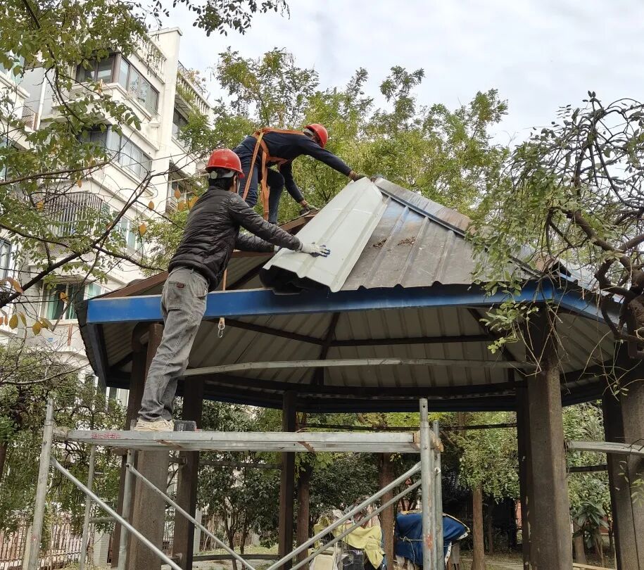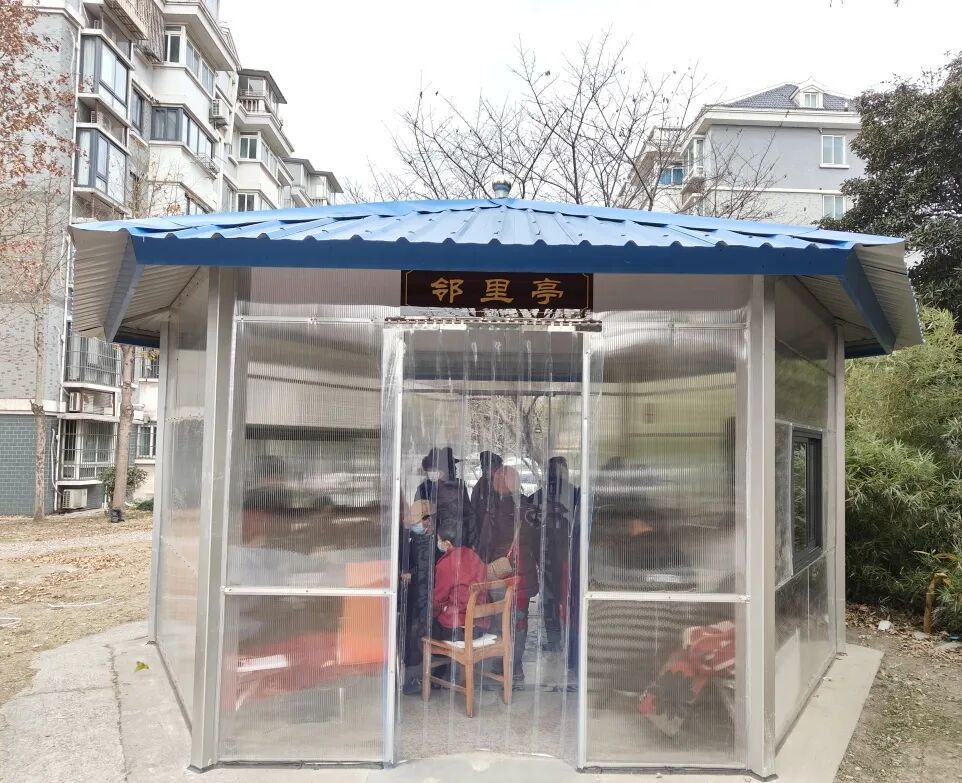 “以前凉亭挂满旧凉席,像个‘蒙古包’,现在又干净又漂亮,我们每天来这儿聊天晒太阳,心里别提多舒坦了!”宝山区杨行镇友谊家园第一居民区的张阿姨坐在焕然一新的凉亭里,脸上满是笑意。近日,该居民区通过党建引领推进凉亭“微改造”,将居民的“心头烦”变成了“舒心事”,用细微之处的变化,守护着居民日常生活中的“小确幸”。 友谊家园第一居民区的两座凉亭,曾是居民们的“心头好”——夏日里能纳凉避暑,冬日里可晒暖聊天,承载着社区老年居民的日常社交与生活记忆,既是社区的风景线,更是居民生活的重要部分。然而,随着时间推移,个别居民在凉亭内私自搭建、堆放杂物,还将防雨布、木条子挂在亭身遮风挡雨,让凉亭秒变“蒙古包”。 “居委每次劝说处理后,没过多久防雨布、木条子又挂了出来,不仅难看,还影响大家休闲的心情。”张阿姨的话道出了不少居民的困扰,杂乱的凉亭与和谐宜居的社区环境愈发格格不入。 为给居民打造更舒适、美观的休闲空间,在镇政府的大力支持下,友谊家园第一居民区正式启动凉亭“微改造”项目。 镇领导,以及居委会、业委会、施工队的工作人员全程跟进,把“意见征求会”开在施工一线:板凳是否具备再利用价值,窗户质量是否符合安全标准,亭身颜色是否与周边环境协调统一…… 从设计到落地,每一处细节都反复打磨、多方征求居民意见,几经调整优化,最终让改造后的凉亭既好用、又贴心,真正办到了居民心坎上。 测量先行 稳步拆除 张贴告知书 谊乐亭 邻里亭 如今,两座凉亭已完成“焕新升级”:洁白的亭身搭配淡蓝色屋顶,清新雅致的外观成为社区新亮点;崭新的座椅整齐摆放,坐上去舒适惬意;凉亭周围花草树木呈现出五彩斑斓的色彩,偶尔有几片叶子被微风拂落,如蝴蝶般翩翩起舞。 不少居民一早带着茶杯来这儿打卡,老朋友们围坐在一起聊天、下棋,欢声笑语不断。 “小而美”的改造,承载着民生之重;“微升级”的变化,提升着居民幸福感。 友谊家园第一居民区相关负责人表示,未来将继续聚焦群众“身边小事”,从居民最关心、最直接的需求出发,把服务做到心坎上,让“有”变“优”,让社区升温焕活,让每一位居民都能在细微之处触摸到生活的美好。