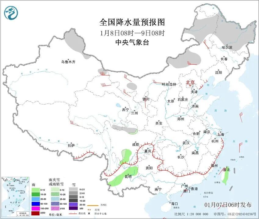 阵性雨夹雪、弱雷电