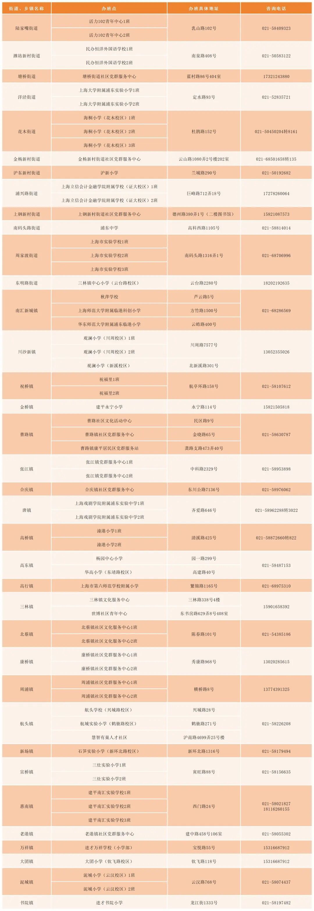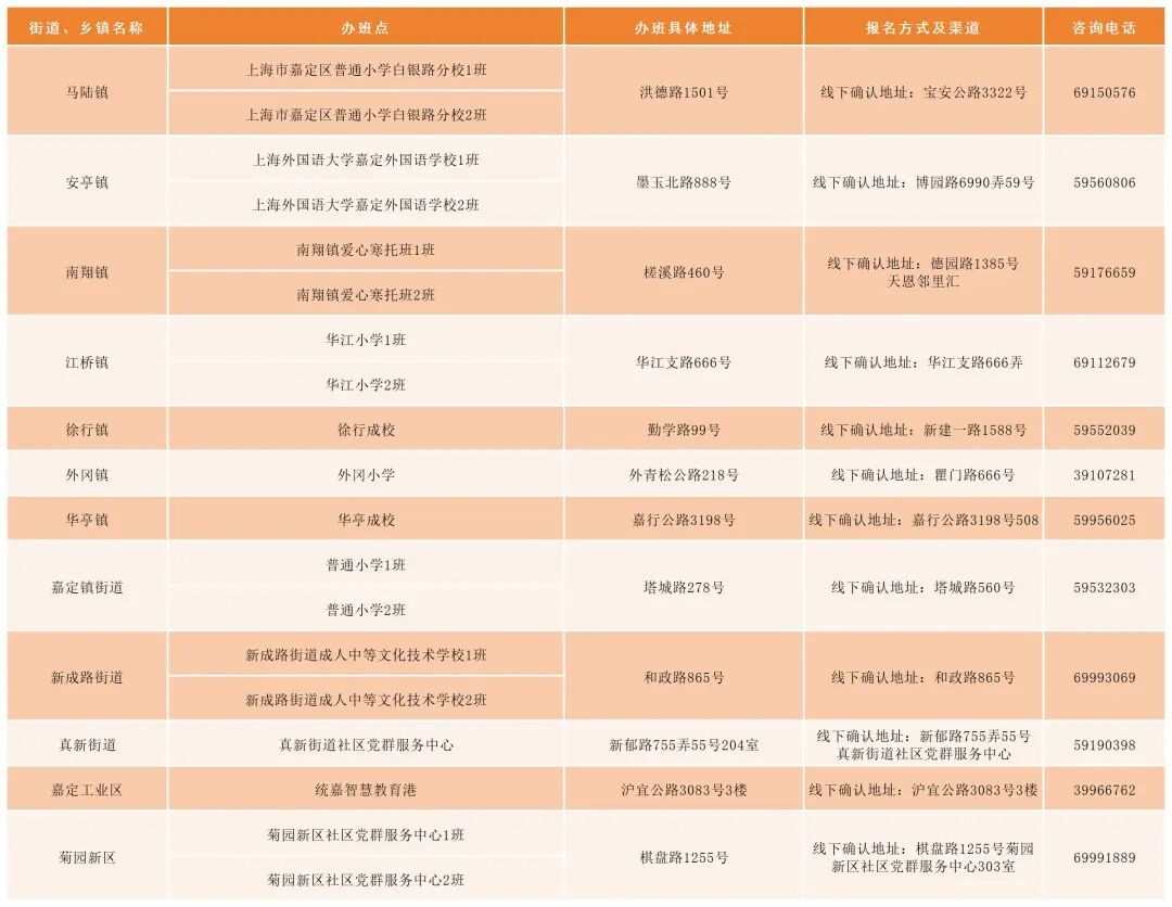 3. 致电各街道、乡镇咨询热线:具体详见各街道、乡镇的招生简章。