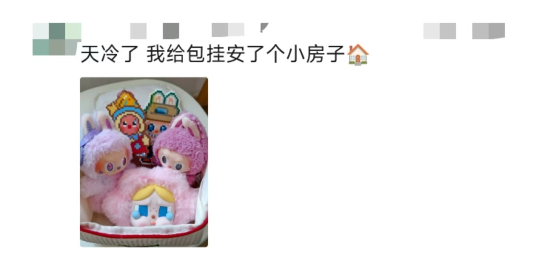 这一届年轻人的心思体现在,既渴望通过外在符号完成自我呈现、传递个人态度,但又不愿被消费主义牵着鼻子走。于是,单价亲民、款式多样的包挂进入了视野,成为平衡两者的替代方案。