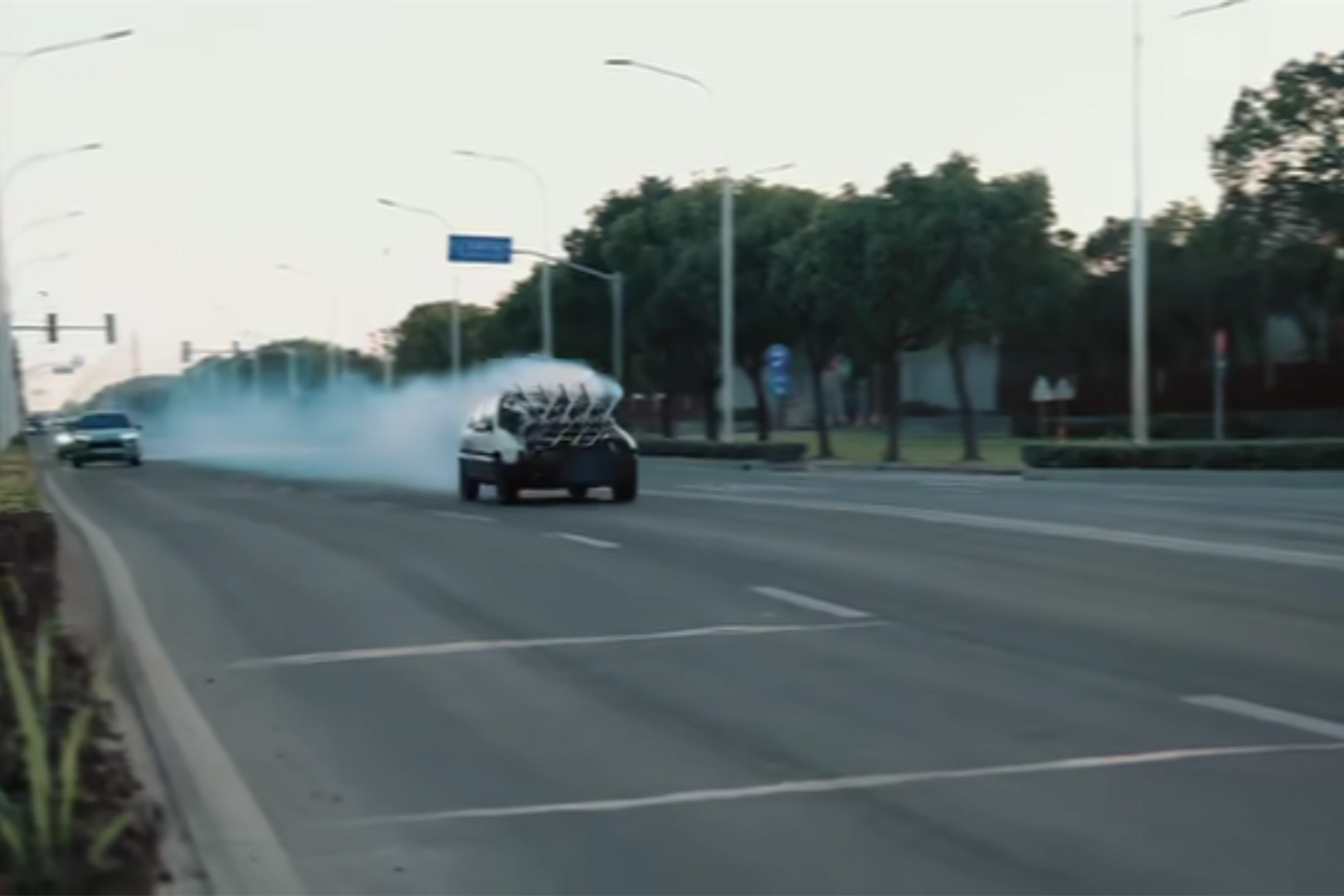 改装车辆行驶时冒着大量白烟