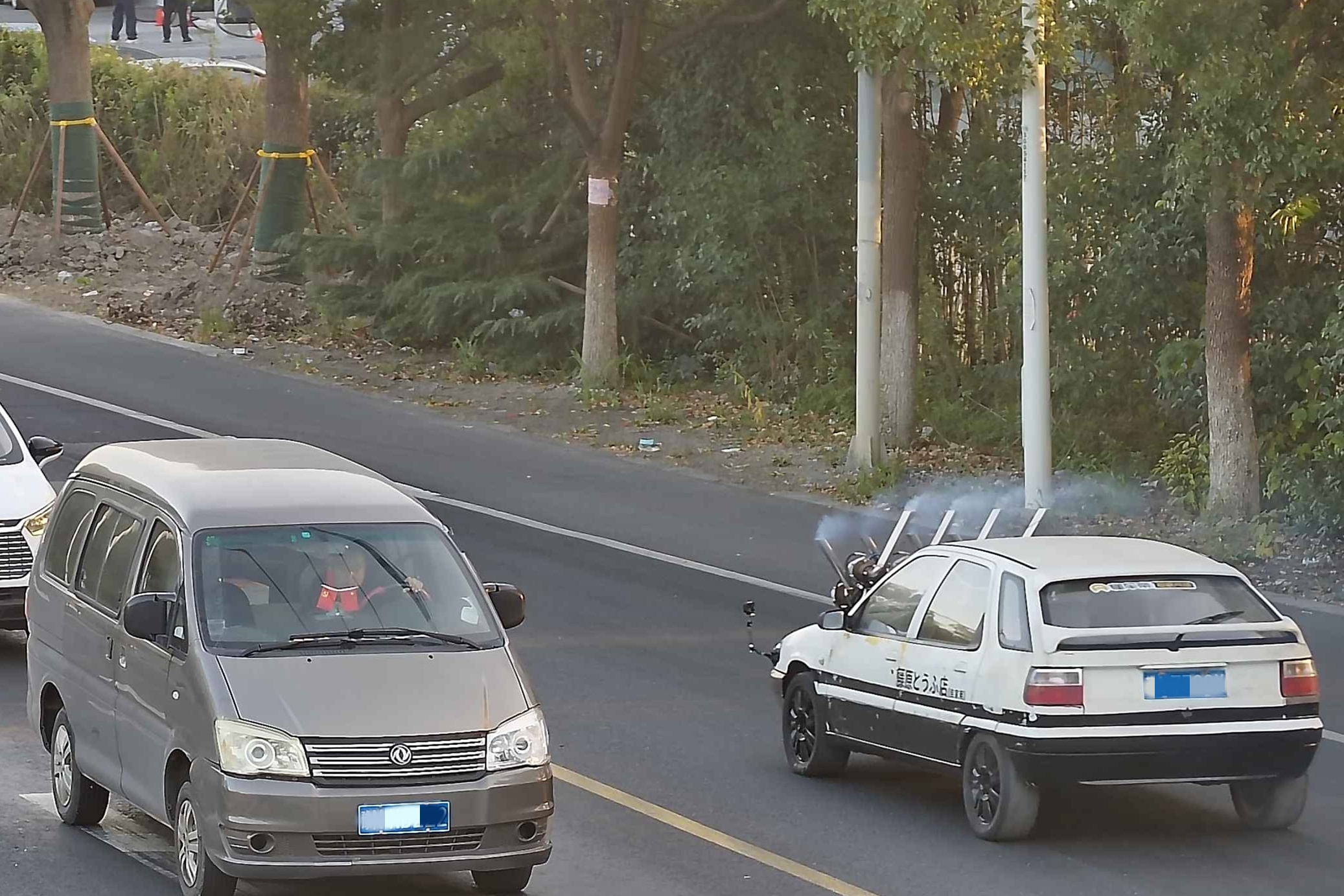 改装车辆(右)上道路行驶