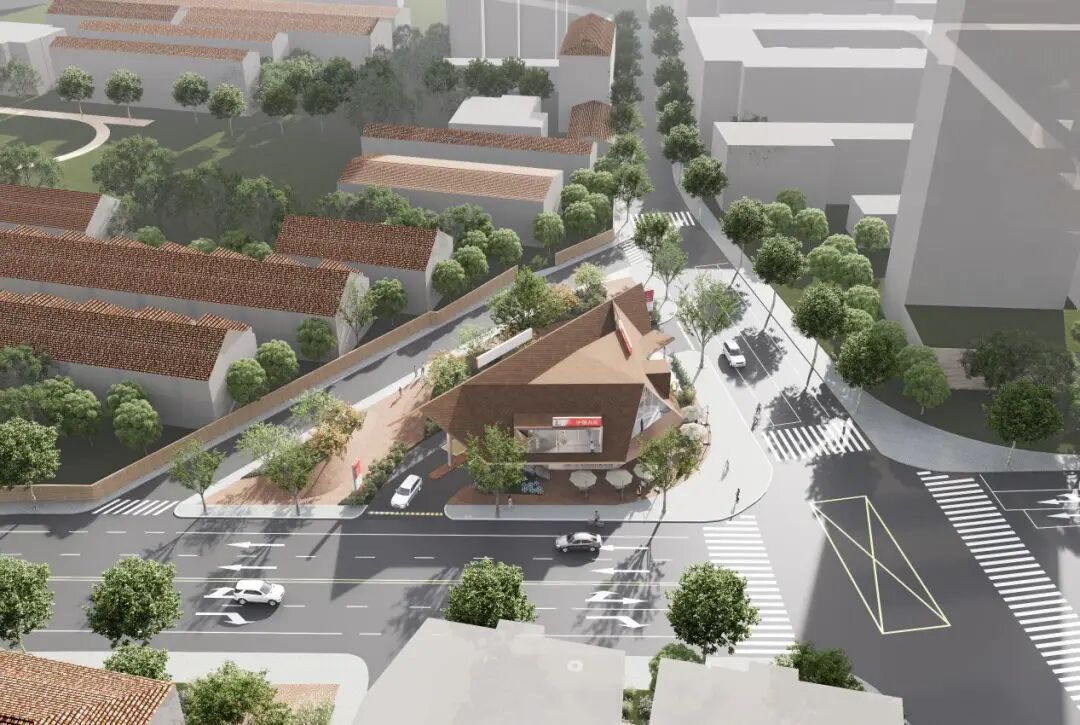 方案以“城市性、文化性、功能性、生态性”为框架,打破传统加油站的刻板印象,将其转化为多维度的公共节点。建筑形态延续山阴路里弄的坡屋顶语言,通过虚实结合的体量设计,既满足加油车辆的流线需求,又为社区预留了开放活力空间。