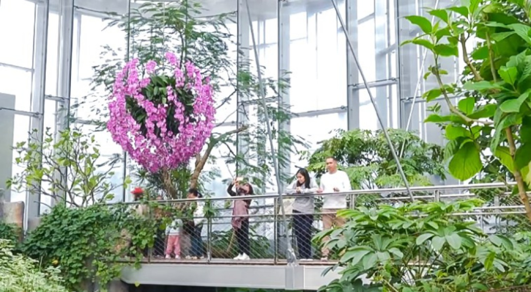 园内两大核心体验点同步走红,掀起假日游园热潮。作为都市登高览胜的绝佳点位,双子山三天内共吸引30348名市民游客登顶,登顶市民游客可将园林雅致美景与陆家嘴摩天楼宇天际线同框的“古今对望”画面尽收眼底。温室展区则成为亲子游、植物爱好者的打卡胜地,三天累计接待市民游客22504人,市民游客在恒温绿意中近距离观赏特色植物,尽享沉浸式自然体验。