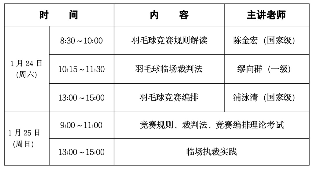 为进一步推动羽毛球运动在普陀区的发展,加强普陀区裁判员队伍的建设,为上海培养更多优秀的羽毛球裁判员。经研究,上海市普陀区羽毛球协会决定于2026年1月24-25日(周六、周日)在普陀区举办一期二三级裁判员培训,本次裁判员培训由普陀区羽协举办。现将有关报名等事宜通知如下: