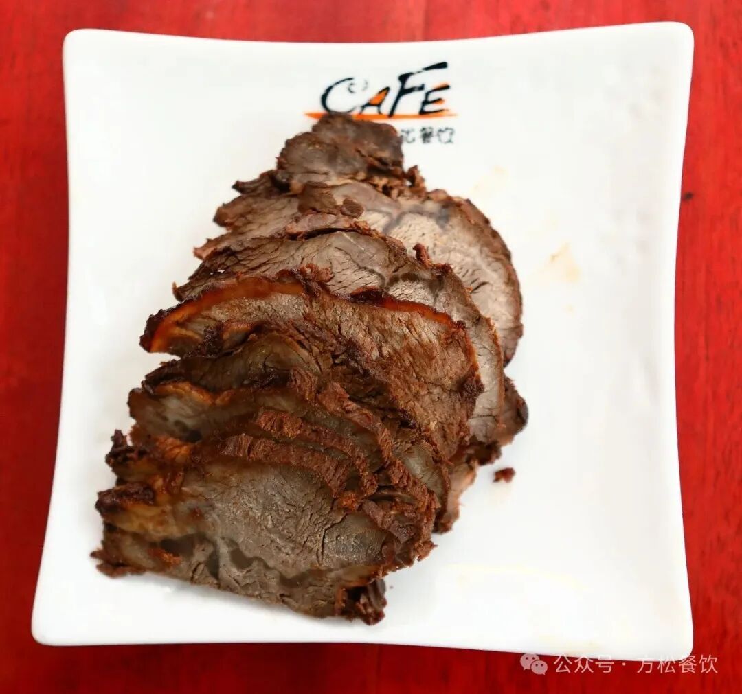 牛肉切片均匀,色泽红润,酱香味浓,口感紧实有嚼劲,是一道不错的下酒菜。
