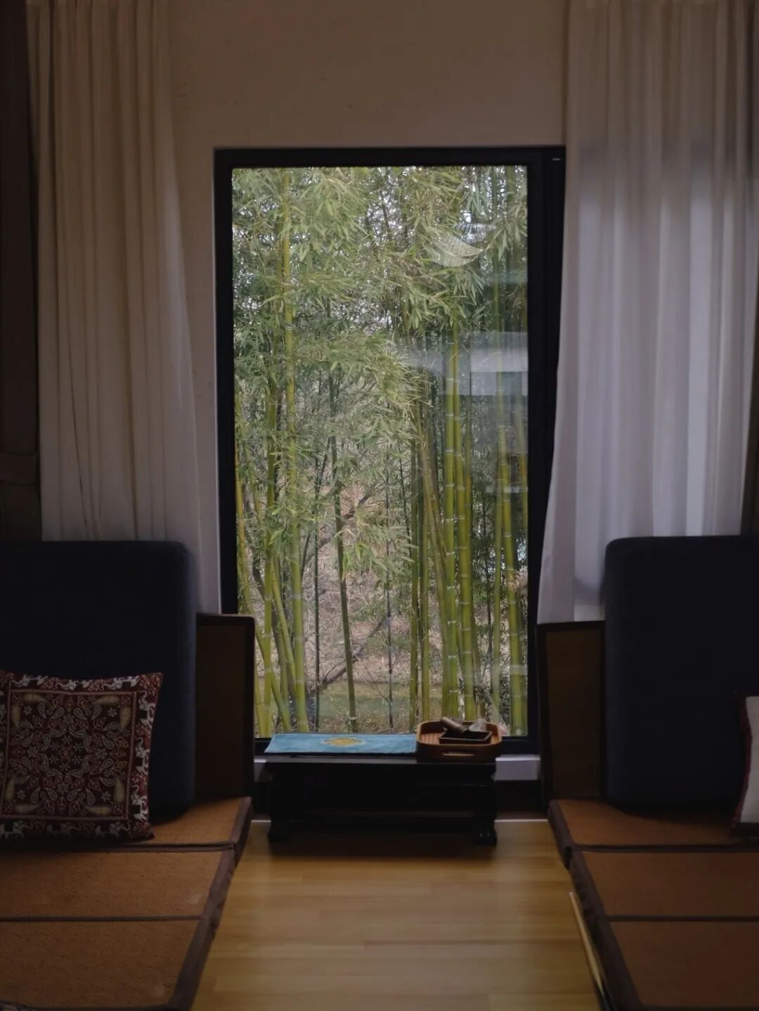 整个空间被竹子这一元素包围,从前院景致到后院竹林,为每一次宴饮增添了远离尘嚣的自然意趣与禅意。