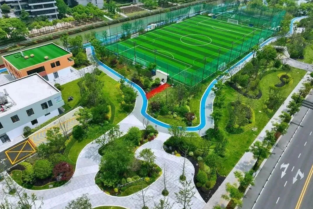 公园一期项目于2023年1月开工,同年5月正式开放,内设健身步道、标准足球场及五人制足球场,并融入了高清智能摄录系统、AR互动骑行等科技设施,打造智慧化运动体验空间。