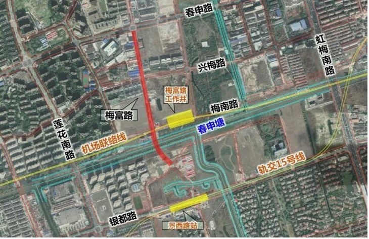 长期以来,梅富路(贤荟路—春申路)路段是周边居民出行的“断点”,此次工程建设不仅是区域路网的“补位”,更是民生服务的“提位”。工程建成后将彻底打通景西路地铁站与春申塘北部区域的交通阻隔,实现春申塘南北两岸“无缝衔接”,让居民出行更顺畅。