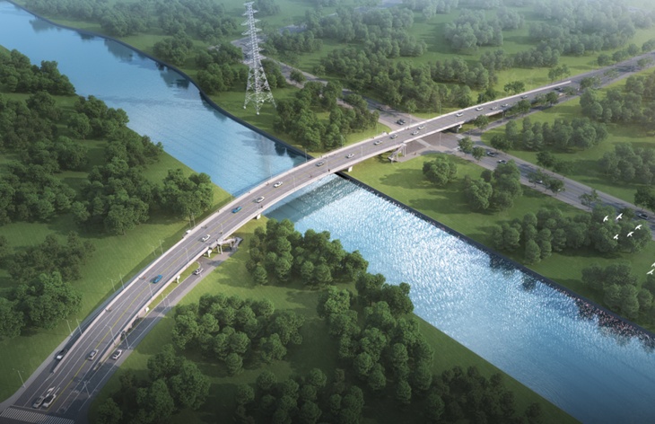 据悉,梅富路(贤荟路—春申路)段南起贤荟路,北至春申路,工程内容涵盖道路、桥梁、排水、交通、护岸与景观等多个领域,是一项综合性市政配套工程。其中,新建跨线桥梁作为项目核心建设内容,将自南向北依次跨越春申塘、市域机场线及梅南路。