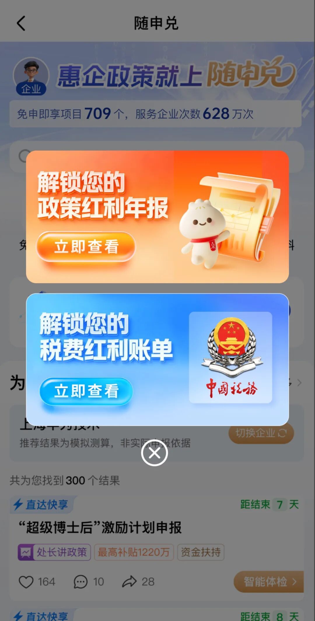 法人可通过“随申办市民云”(APP/微信小程序/支付宝小程序)或扫一扫下方二维码进入“随申兑”查询名下企业政策红利年报。