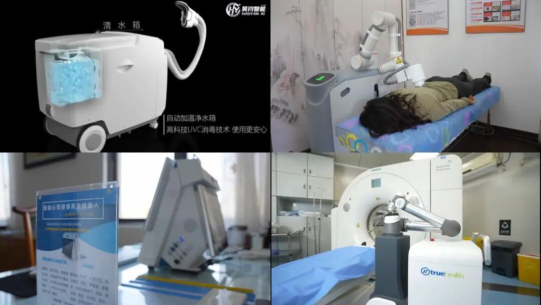 昊闫智能聚焦于智能理疗康养、康复辅助、AI诊疗和专业护理四大维度,这一战略选择基于对医疗痛点的深刻理解。 “科技的终极价值是解放人力、放大关怀。”李建表示,公司口号“带着温度的科技陪伴”中,“温度”体现的是对患者的共情与尊重,“陪伴”则意味着覆盖预防、诊疗、康复、随访的全周期支持。 在公司展示厅,一系列创新产品令人眼前一亮:智能中医理疗机器人通过机械臂搭载力传感器,实现毫米级精准定位经络穴位,模拟8种中医手法,理疗效率提升40%;智能“方便”护理机器人通过高精度传感器和特殊材料设计,帮助失能老人告别纸尿裤,实现尊严护理;智能经皮穿刺手术导航机器人作为国内首创的“脑—眼—手—体外”机器人系统,正准备在奉贤区中心医院进行上海首台手术。 尤为引人注目的是那台心理筛查机器人。它通过100fps高速相机捕捉300多个面部关键点,结合声学特征和生理信号分析,准确率高达95%。目前,该设备已在奉贤工人文化宫、西渡健康小院等场所进行试点应用。